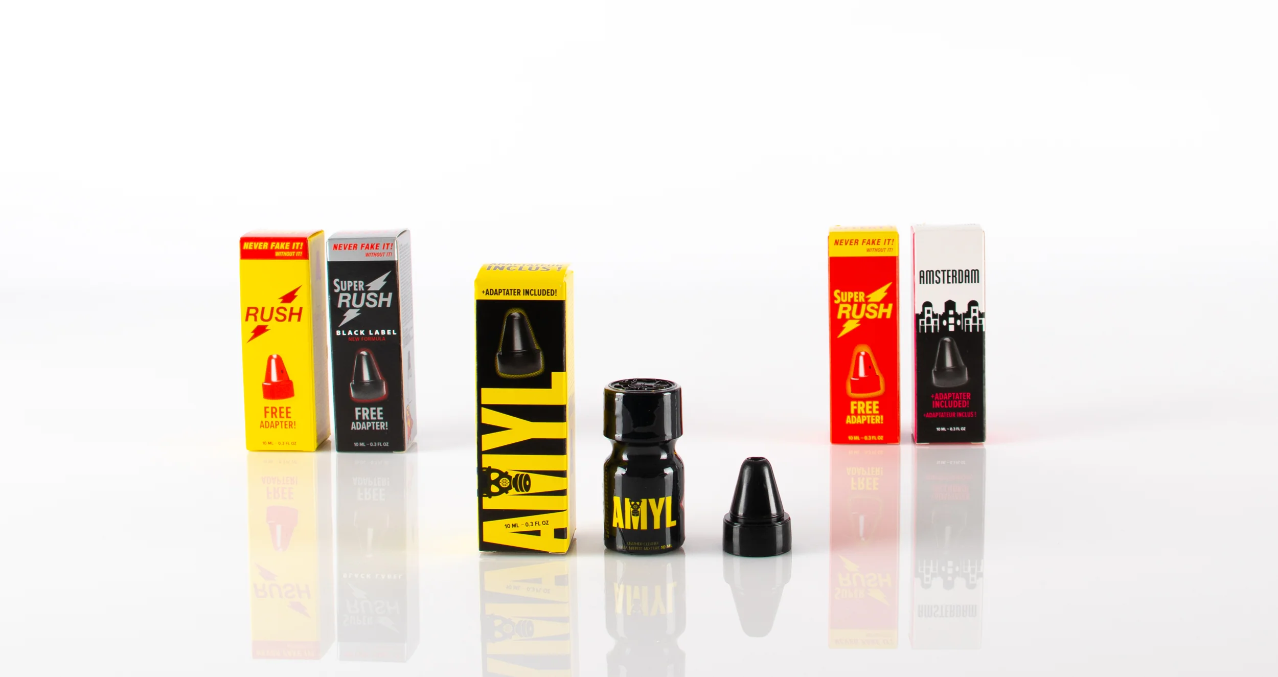 A number of our own brand poppers contain Amyl Nitrite and a whole range of our European Imports too.